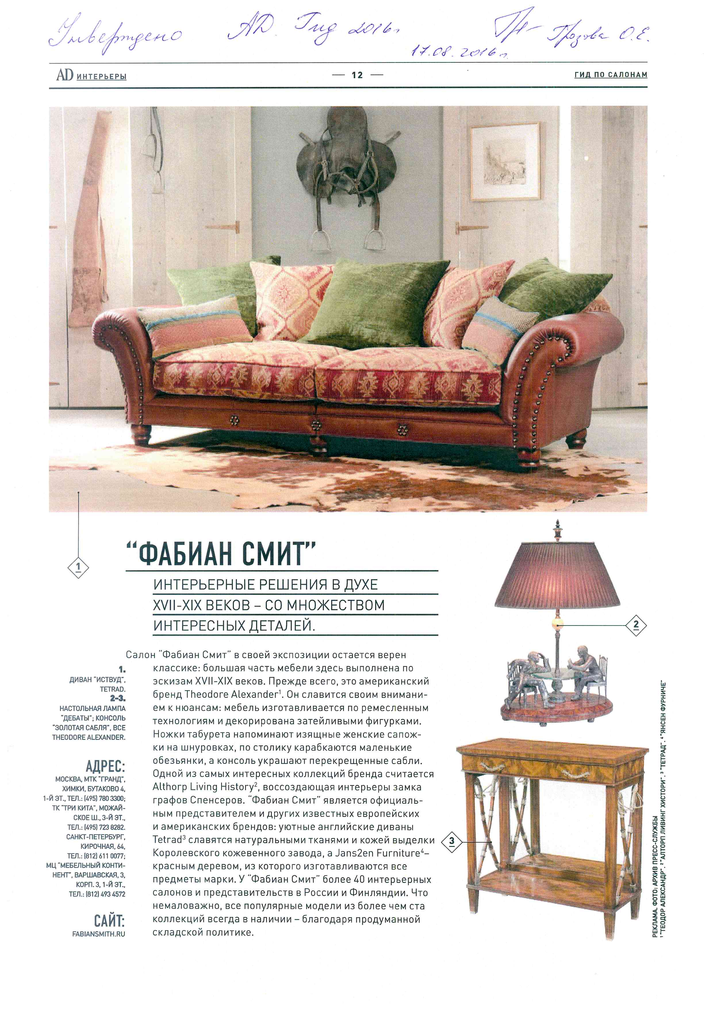 Гид по интерьерным салонам Москвы и Санкт-Петербурга // 2016